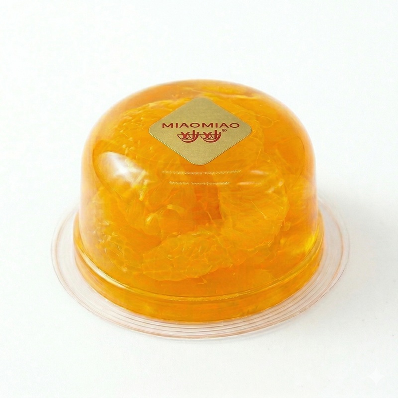 La gelatina de naranja MIAOMIAO incluye un gajo de mandarina real en cada envase transparente. Con un contenido de fruta de al menos el 35 % y certificación HALAL, este snack de larga duración y alto margen de beneficio es perfecto para la venta al por mayor a nivel mundial.